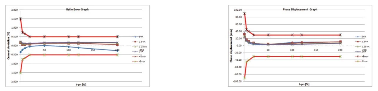 Rasio arus primer sing bisa disesuaikan, kelas akurasi, lan output VA sing dirating